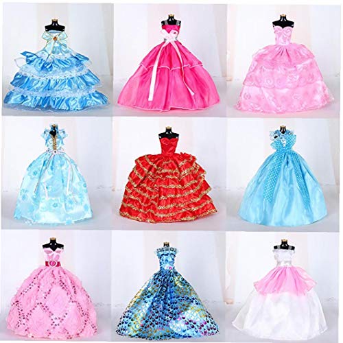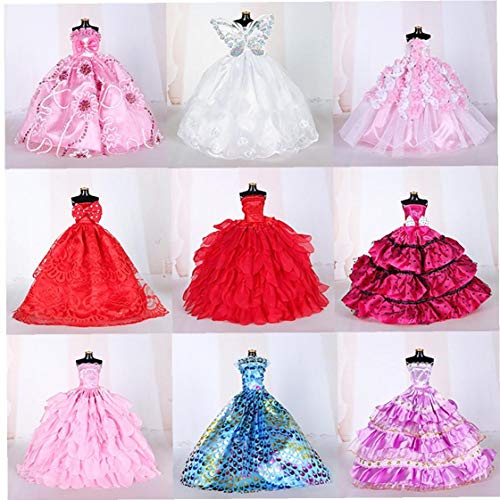 Specificaties: 10 PCS Handmade Novelty Dress Wedding Party Jurken Kleding voor Doll Xmas Gift (willekeurige kleur/Style) Toy Doll