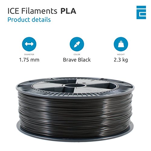Specificaties: ICE FILAMENTS, PLA Filament, 3D Printer Filament, 1.75mm, 2.3kg, Brave Black (zwart) ICEFIL1PLA103