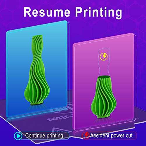 【Meer functies】Snelle verwarming: bereik 110 graden Celsius voor warm bed in ongeveer 5 minuten. Afdrukken hervatten: één klik om door te gaan met de laatste afdruk vanaf de uitschakeling. Filament Detection: Auto pauzeren als de gloeidraad opraakt of breekt. Magnetisch platform: haal het model gemakkelijk eruit.