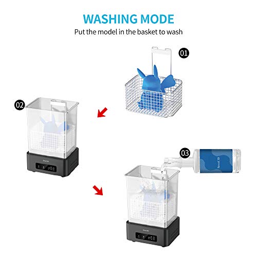 【Wasmodus】Hij kan voor afzonderlijke reiniging en daarmee voor volledige reiniging van alle gedrukte modellen in de reinigingsmand worden gelegd. Compatibel met de meeste op de markt verkrijgbare LCD/DLP/SLA-3D-printers, evenals Anycubic Photon, Photon S, Photon Zero, Photon Mono, Mars Pro, Orange 10 enz.